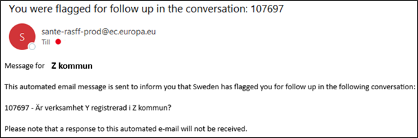 När en myndighet har ett meddelande i AAC eller en fristående konversation att ta del av sänds ett ”automejl” till de personer på mottagande myndighet som har tillgång till iRASFF. Det sker förutsatt att de har e-mail channel aktiverad i iRASFF.